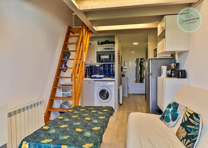 Het Sardineatelier ligt 2,1 km verderop, terwijl het Strand van Bussoleries op slechts een paar stappen van dit appartement is. Als alternatief kunt u ook een bezoek brengen aan Saint-Jean-de-Monts die zich op 13 km van 0-slaapkamer Appartement 208 Residence Bora Bora bevindt.